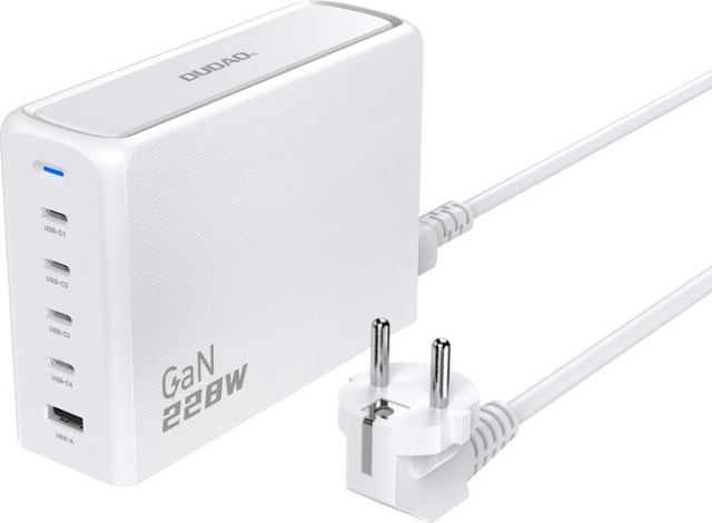 Dudao A228EU 228Watt Adapter GaN 4xUSB-C + 1xUSB-A hvid